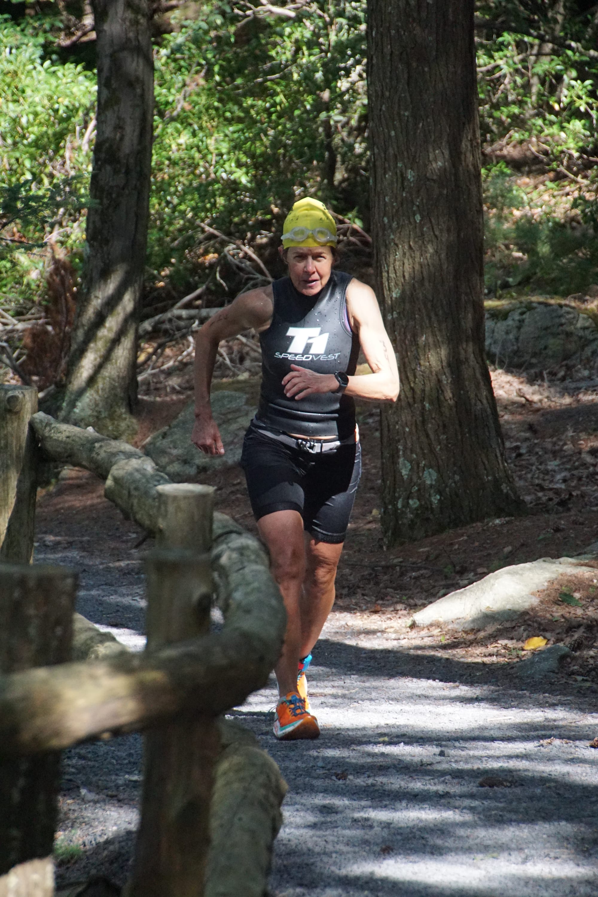 In her two decades of running, she’s run along the freshwater shores of Lake Champlain in Vermont and on a remote island in Maine. She’s slept in the back of her Subaru Forester for longer races, nicknamed “Hotel Subaru,” which is “sort of plush.” It’s better than sleeping in a port-a-potty, a true horror story by other runners.