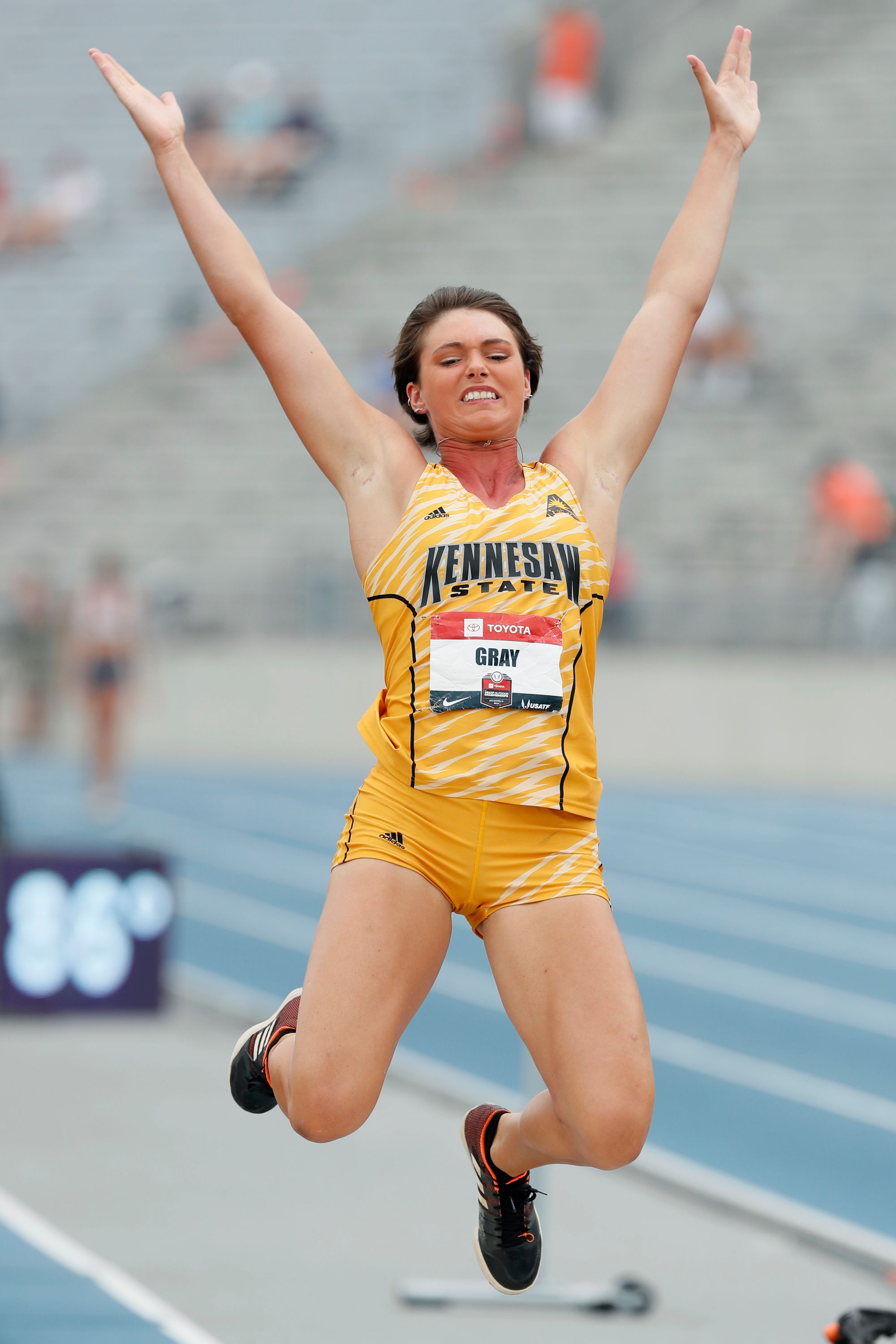 Gray went, and she conquered. She claimed the US record in the event, not so much setting it as obliterating it. Her 7,921 points topped the nearly two-decade-old previous American record by nearly 350 (a record she later increased). Her long jump result matched a world record.