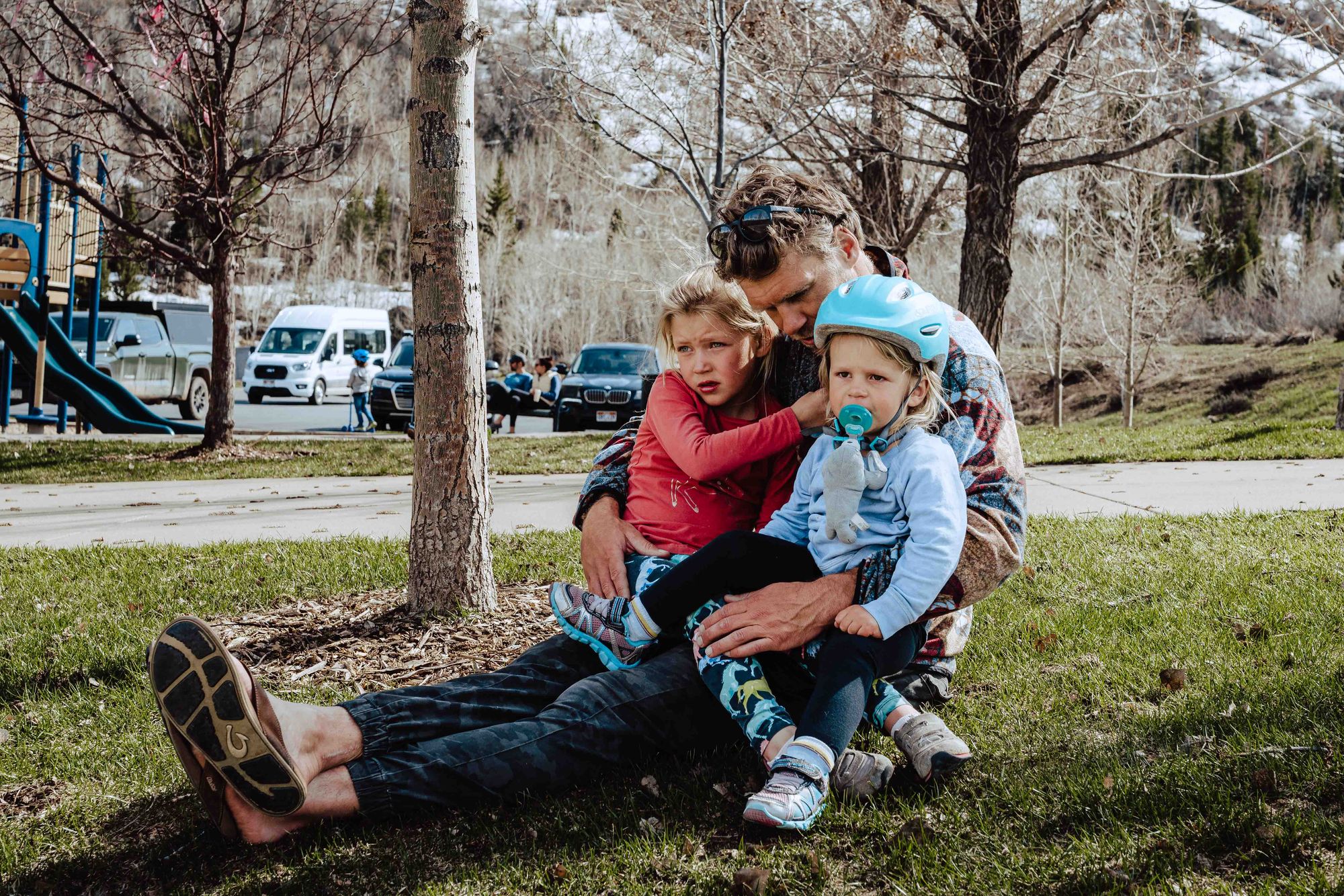 Steven with his girls, Nell and Ayla, near their home in Park City, Utah. [Matthew Fults photos]